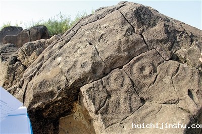 近日,中国北方岩画研究所的专家和研究员对红山文化区古代岩画进行调查,在赤峰市翁牛特旗东部沙漠中发现史前巨幅无轮廓人面像岩画。